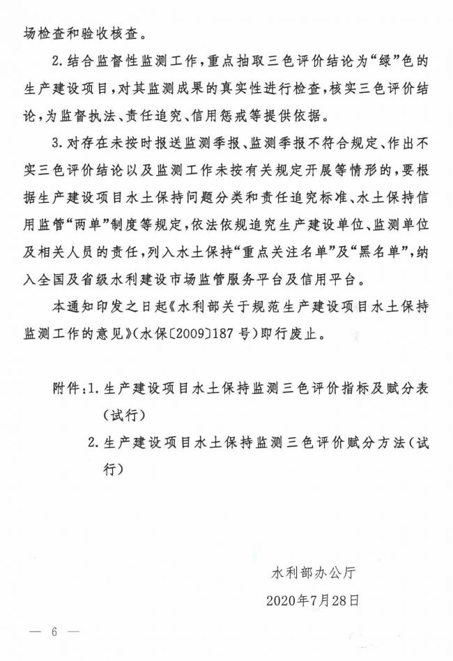 水利部办公厅关于进一步加强生产建设项目水土保持监测工作的通知(办水保〔2020〕161号)